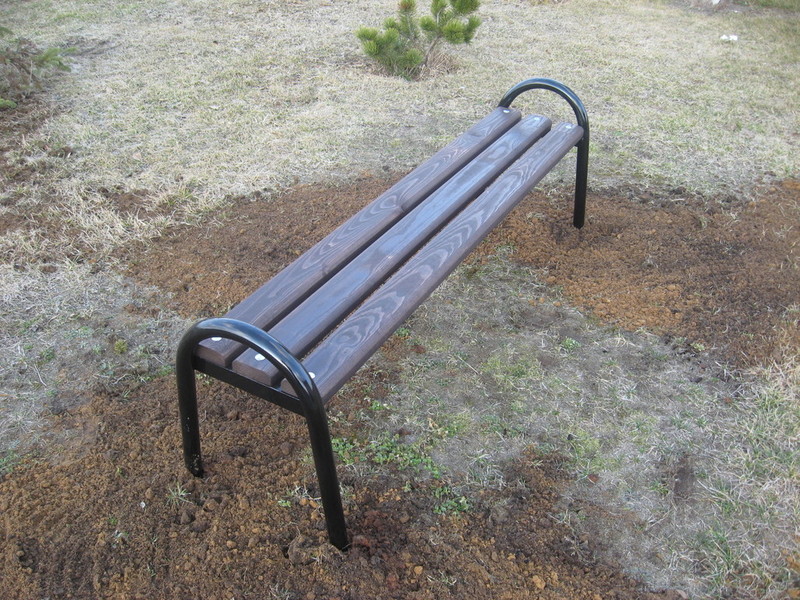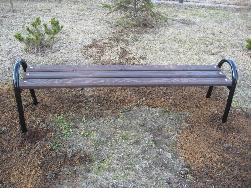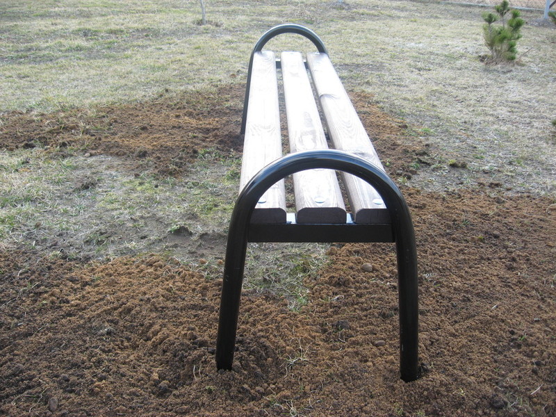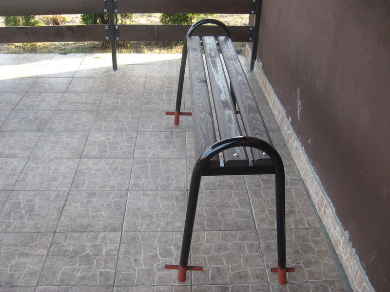 Stelaże ławki są wykonane z rury fi 35x2 mm. oraz kątownika 35x35 mm. malowanie farbą podkładową i nawierzchniową. Listwy drewniane o wymiarach 30x80x1400 mm. malowane impregnatem. Całość skręcana śrubami M8. Na nakrętkach śrub zastosowano maskownice. Część wkopana ma długość około 200 mm. i jest zakończona kotwami.