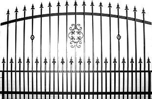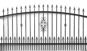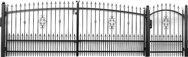 Dwa skrzydła wjazdu, furtka, zamek,