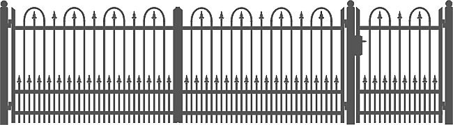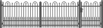 Dwa skrzydła wjazdu, furtka, 3 słupki z profilu zamkniętego 80x80x3 mm z ozdobnym daszkiem oraz specjalnymi zawiasami uniemożliwiającymi zdjęcie zamkniętej bramy lub furtki, zamek, klamka.
