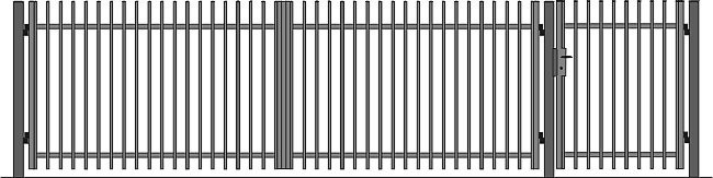 Dwa skrzydła wjazdu, furtka o szerokości 1 m, 3 słupki z profilu zamkniętego 80x80x3 mm ze specjalnymi zawiasami uniemożliwiającymi zdjęcie zamkniętej bramy lub furtki, zamek, klamka.